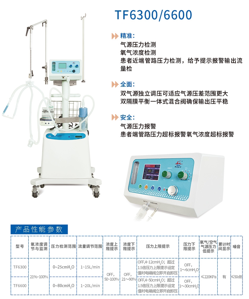 精准:气源压力检测,氧气浓度检测患者近端管路压力检测,